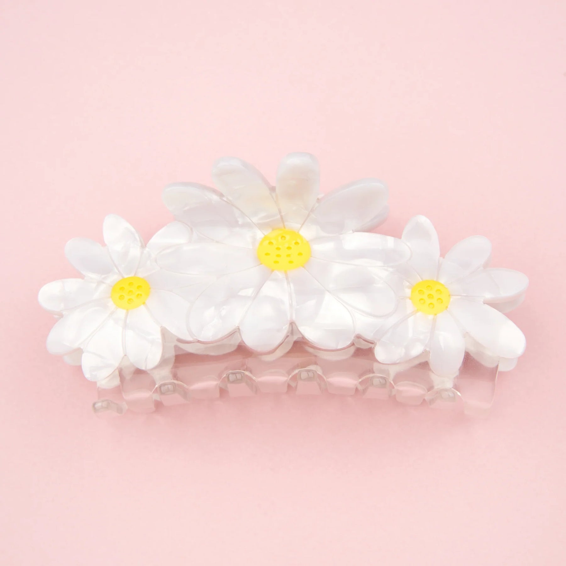 La pinza de Coucou Suzette, Trío Margaritas es el accesorio imprescindible que ha acompañado a nuestras clientas durante años. En su versión 2026, esta pinza de pelo floral ha sido mejorada para atrapar aún más mechones con facilidad. Perfecta para cualquier estación, crea peinados elegantes en un solo gesto. Un clásico reinventado que combina funcionalidad y estilo.