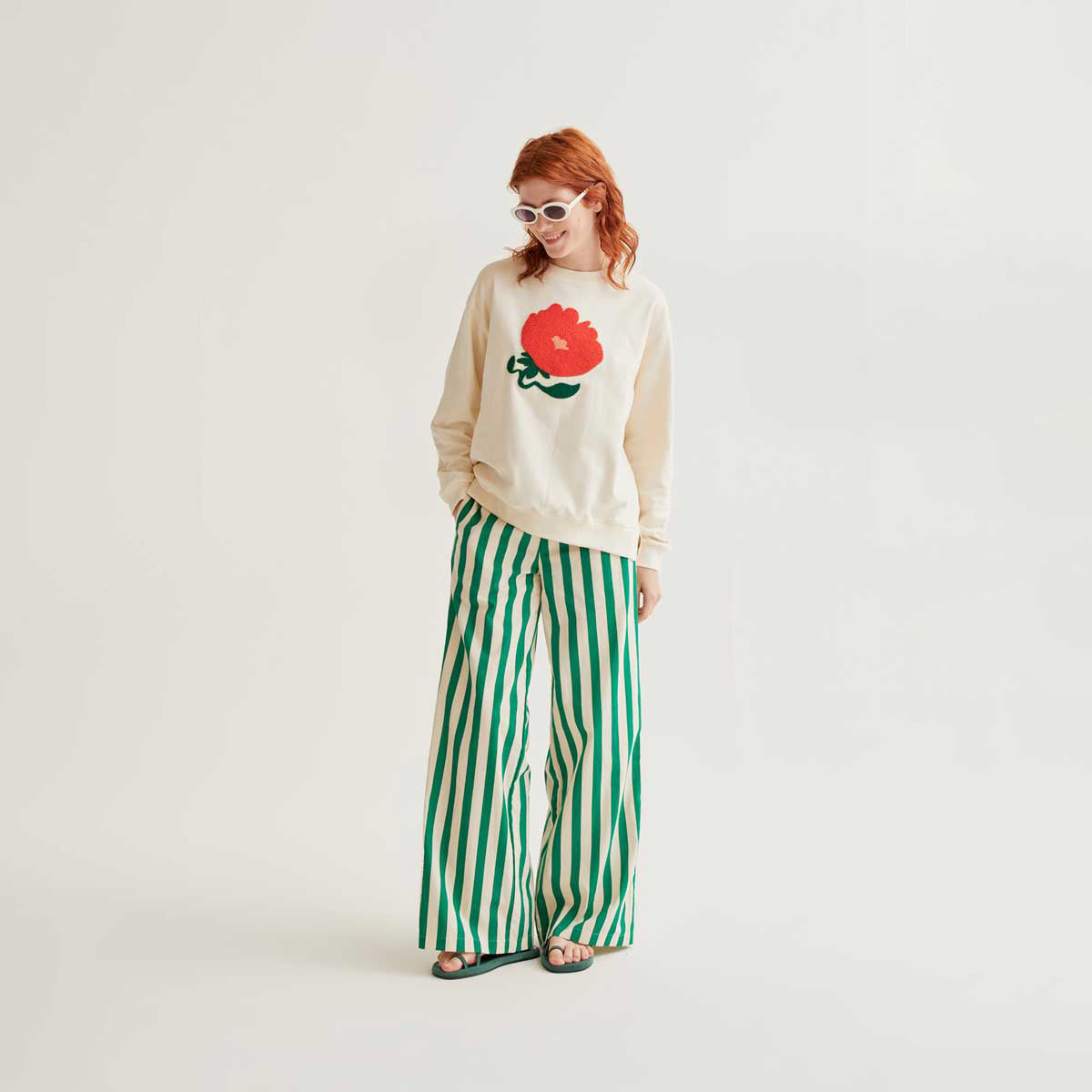Abraza la naturaleza con estilo en esta sudadera que destaca por su espectacular bordado de flor gigante roja. Un diseño audaz y colorido que transforma una prenda básica en una declaración de moda. Perfecta para quienes buscan añadir un toque artístico y alegre a su armario. Cómoda, versátil y lista para convertirse en tu favorita del día a día.
