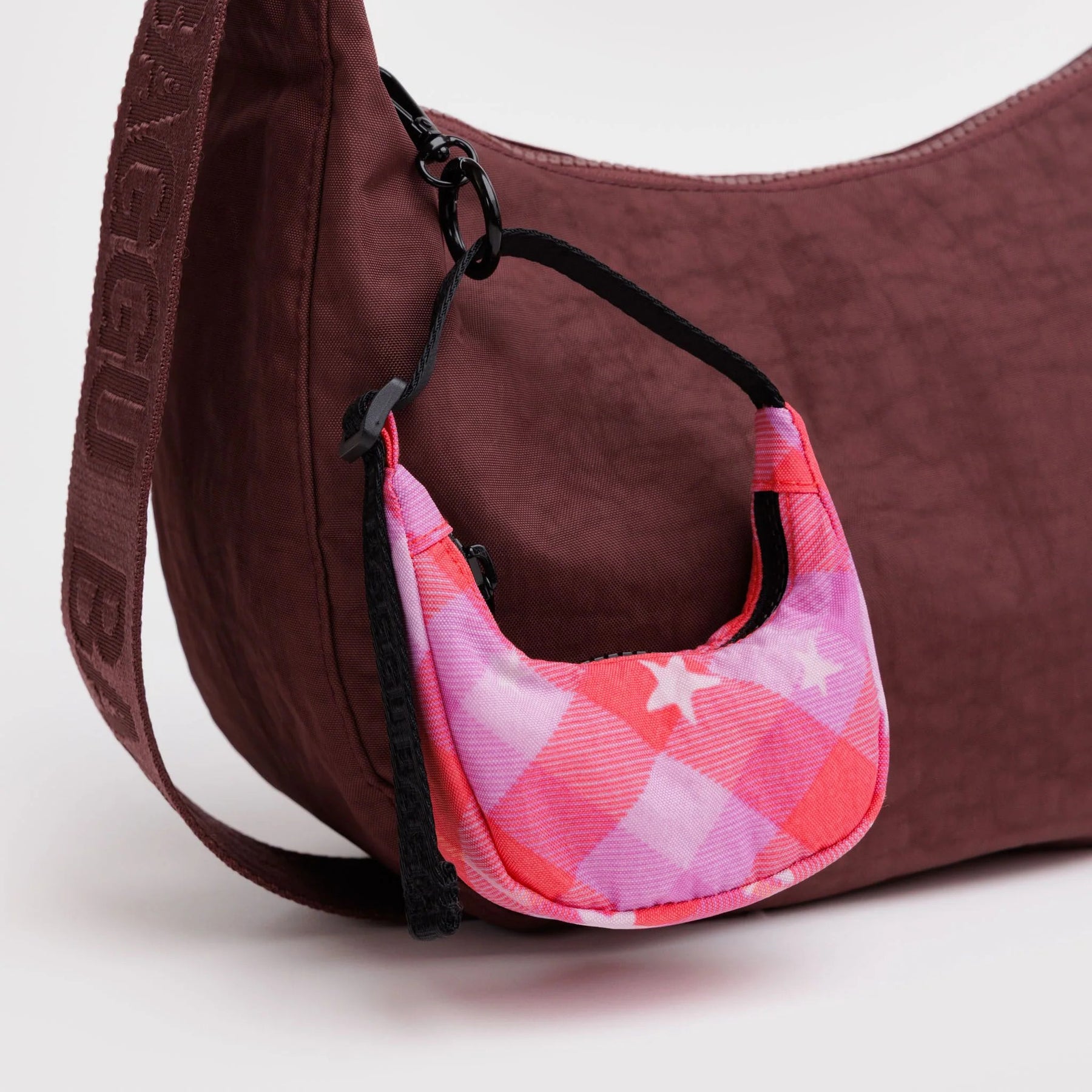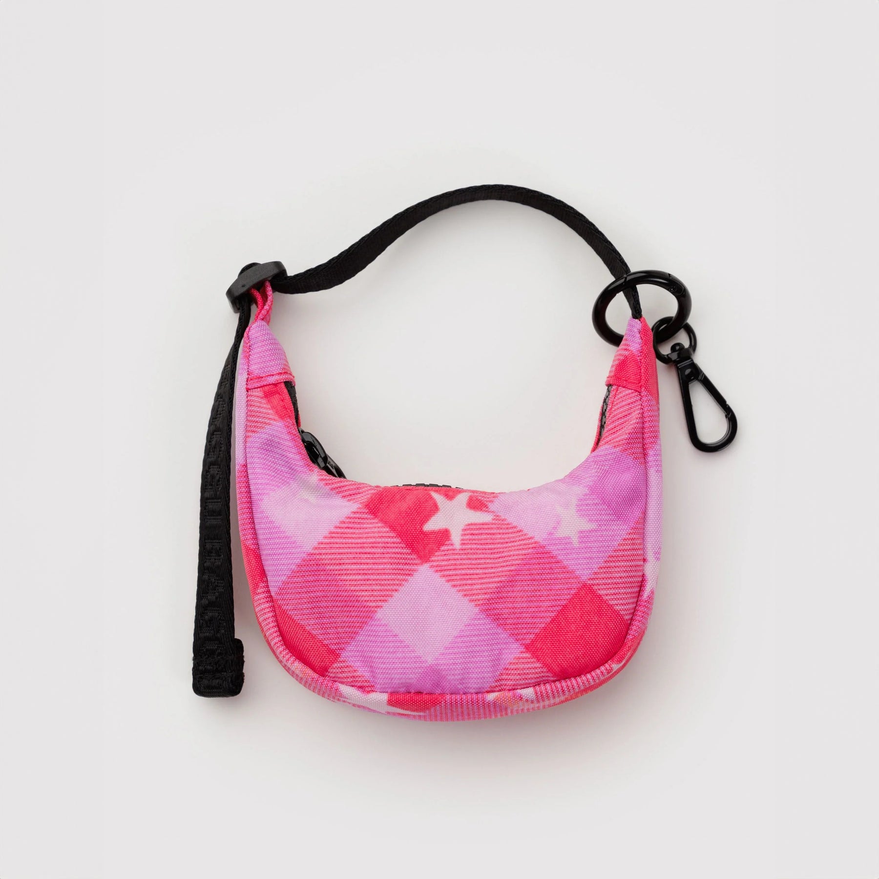El encanto Crescent Bag es el complemento perfecto para tu bolso favorito. Este accesorio versátil mantiene tus artículos esenciales—tarjetas de crédito, bálsamo labial y más—siempre a mano y organizados. Con su diseño en cuadros rosa y estrella, añade un toque de estilo juguetón a cualquier bolsa. Compacto pero funcional, es la solución ideal para quien busca practicidad sin sacrificar el estilo.