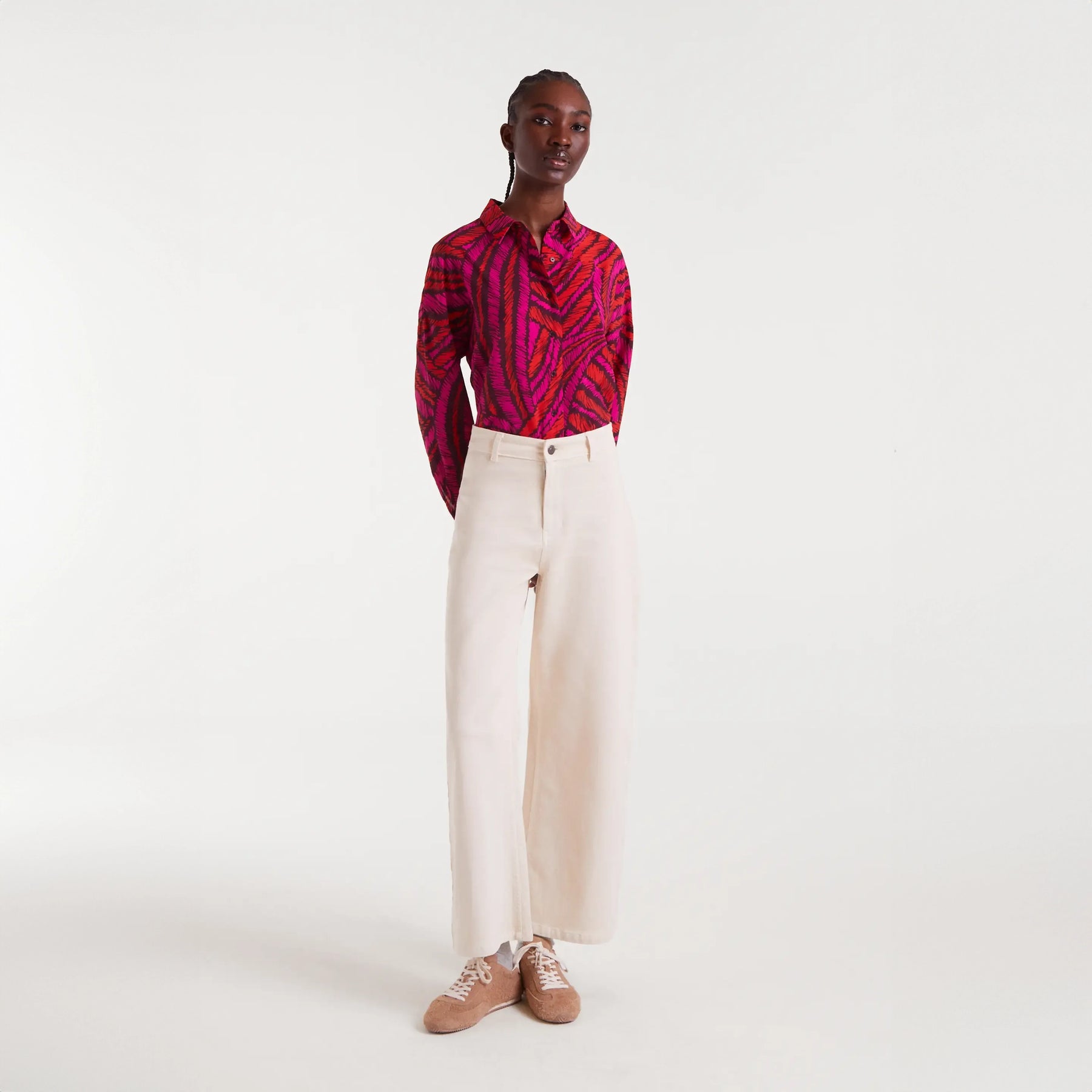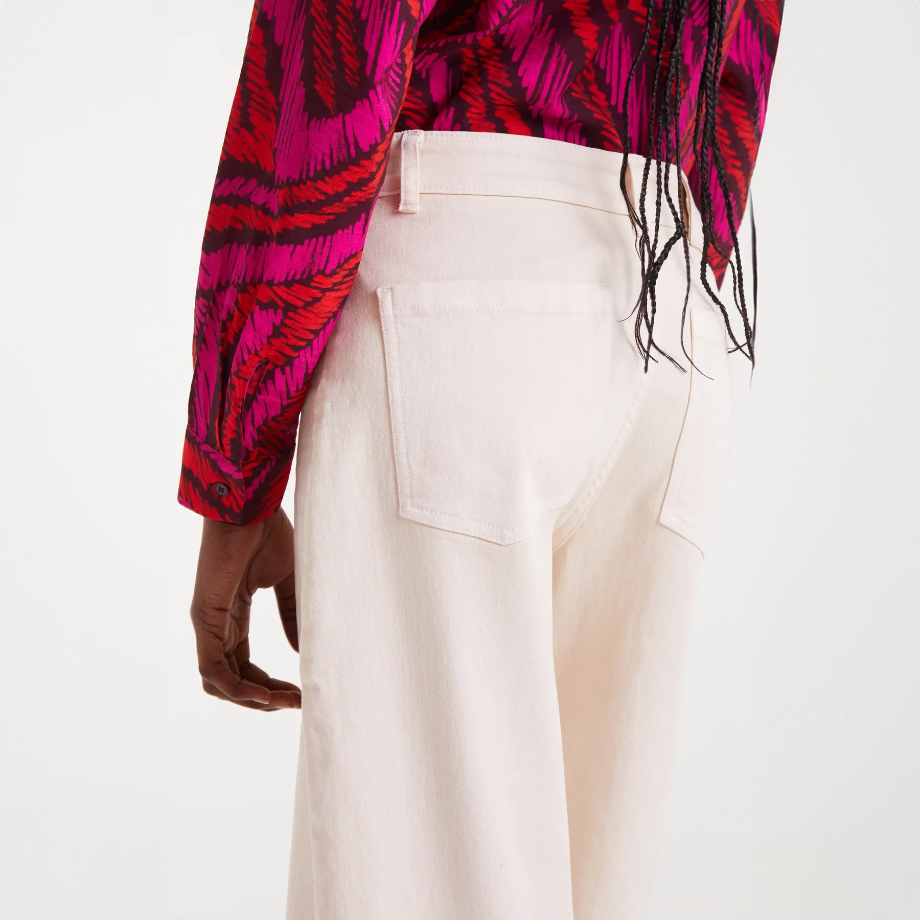 Este pantalón vaquero blanco de Compañía Fantástica combina estilo y comodidad gracias a su tejido denim elástico. Con un diseño de tiro alto y pernera recta, ofrece un ajuste favorecedor que realza la figura. Incluye cierre frontal con cremallera y botón, además de prácticos bolsillos laterales y traseros, ideales para un look casual y funcional. Ideal para quienes buscan un toque de color vibrante sin renunciar a la versatilidad y el confort.