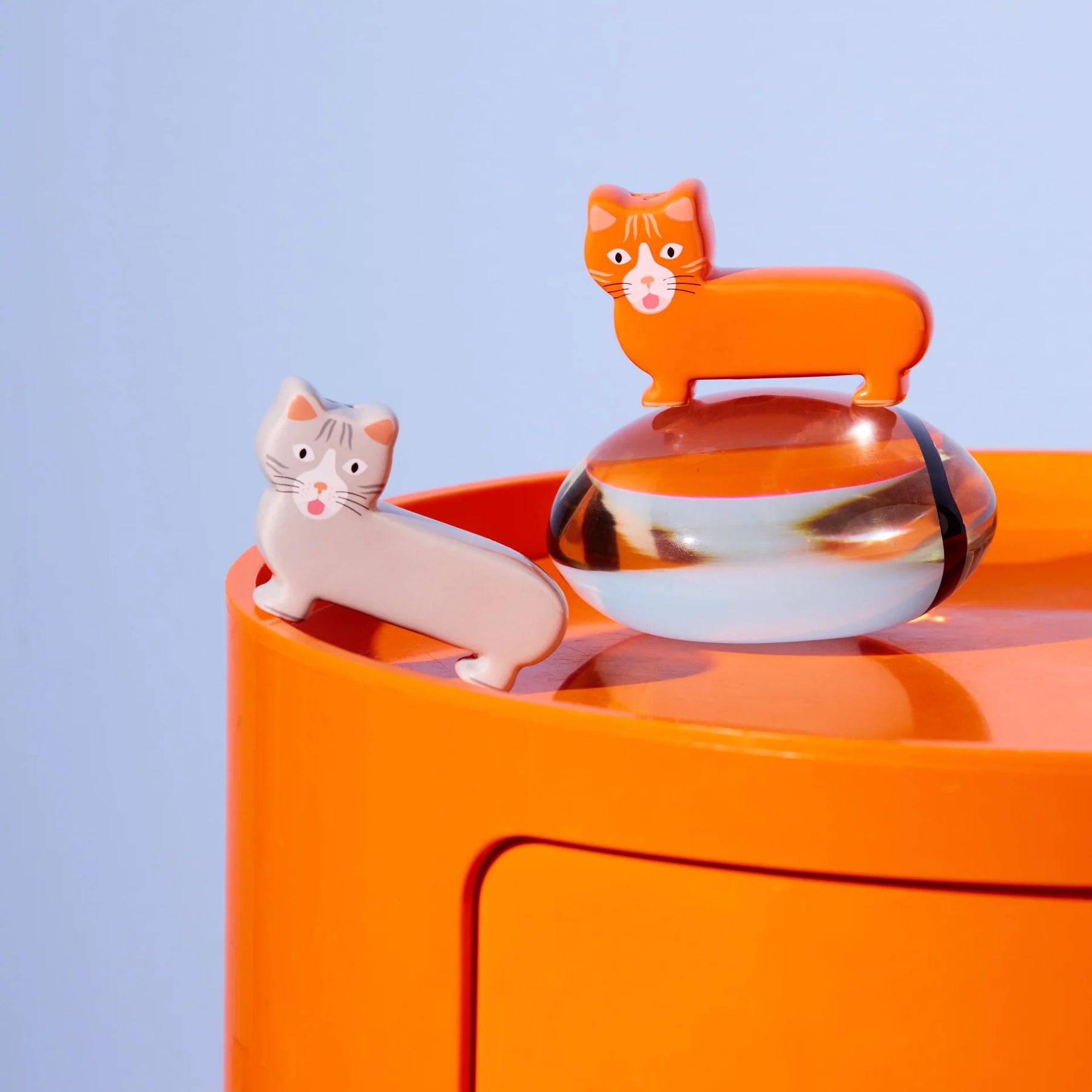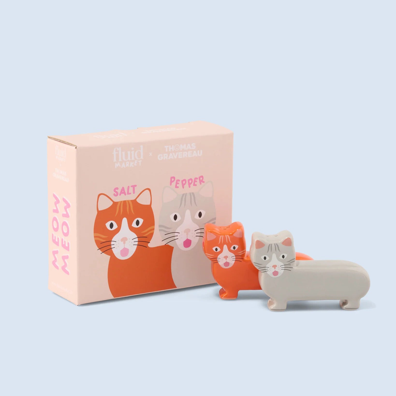 Descubre estos adorables salero y pimentero con forma de gatito, fruto de la colaboración con Thomas Gravereau. Con su diseño irresistiblemente tierno, son ideales para dispensar sal, pimienta o tus especias favoritas en la cocina. Pero su encanto va más allá: estos mininos también funcionan como decoración perfecta para cualquier estante, añadiendo un toque de calidez y personalidad a tu hogar. ¡Tan lindos que querrás tenerlos a la vista! 😍🧡