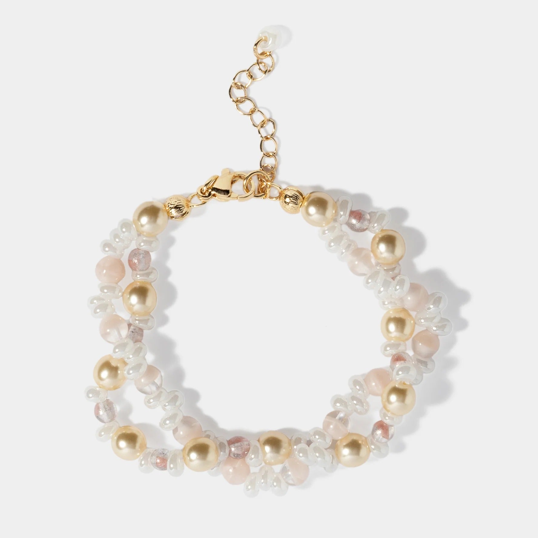 La pulsera Rita es tu aliado perfecto para un estilo sin esfuerzo. Con su diseño dual que simula llevar dos piezas simultáneamente, combina ligereza y comodidad para el uso diario. Sus tonos blancos y beige neutros se adaptan a cualquier look, creando un accesorio atemporal que trasciende tendencias. Elaborada artesanalmente con cuentas de cristal checo PRECIOSA®, reconocidas mundialmente por su excelencia y herencia bohemia. Los acabados de latón bañados en oro añaden un toque de sofisticación que eleva cualquier conjunto. Una pulsera versátil que querrás llevar siempre contigo.