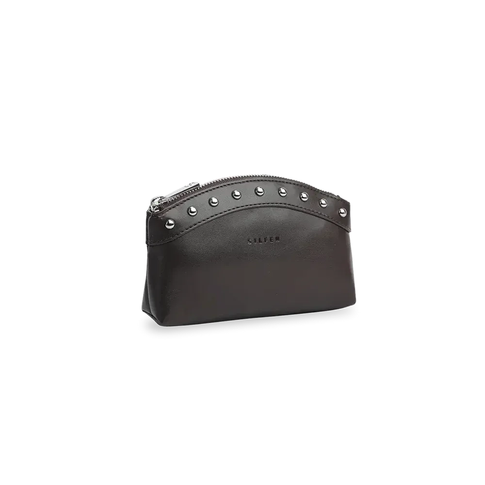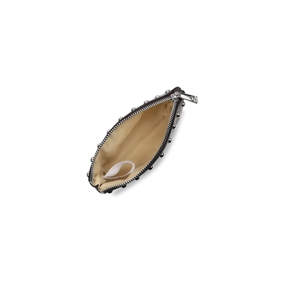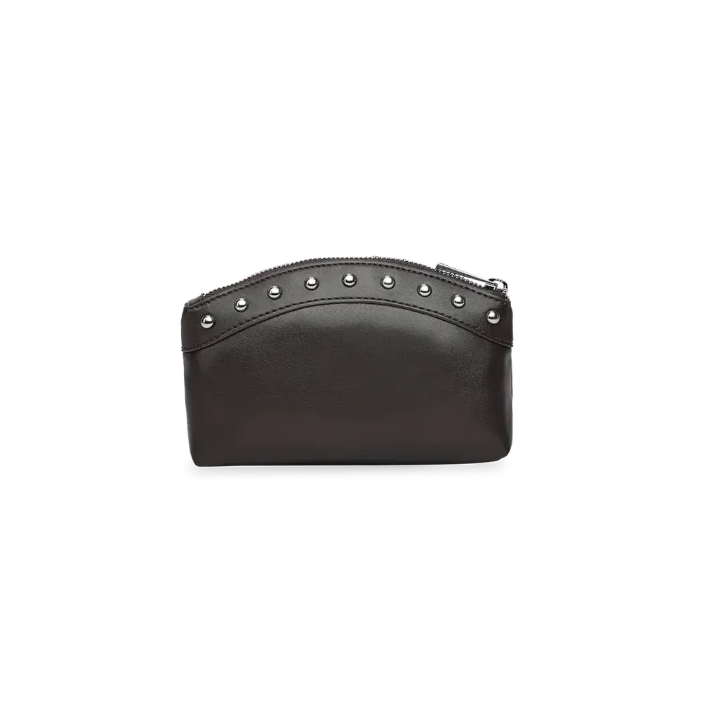 Organiza tus imprescindibles de belleza con nuestro neceser Minnie. Diseñado con un amplio compartimento principal, ofrece espacio generoso para maquillaje, productos de cuidado personal y otros artículos que desees tener a mano. Confeccionado en material suave y adornado con tachuelas plateadas decorativas, combina funcionalidad con un toque moderno y atrevido. Perfecto para llevar contigo a cualquier lugar.