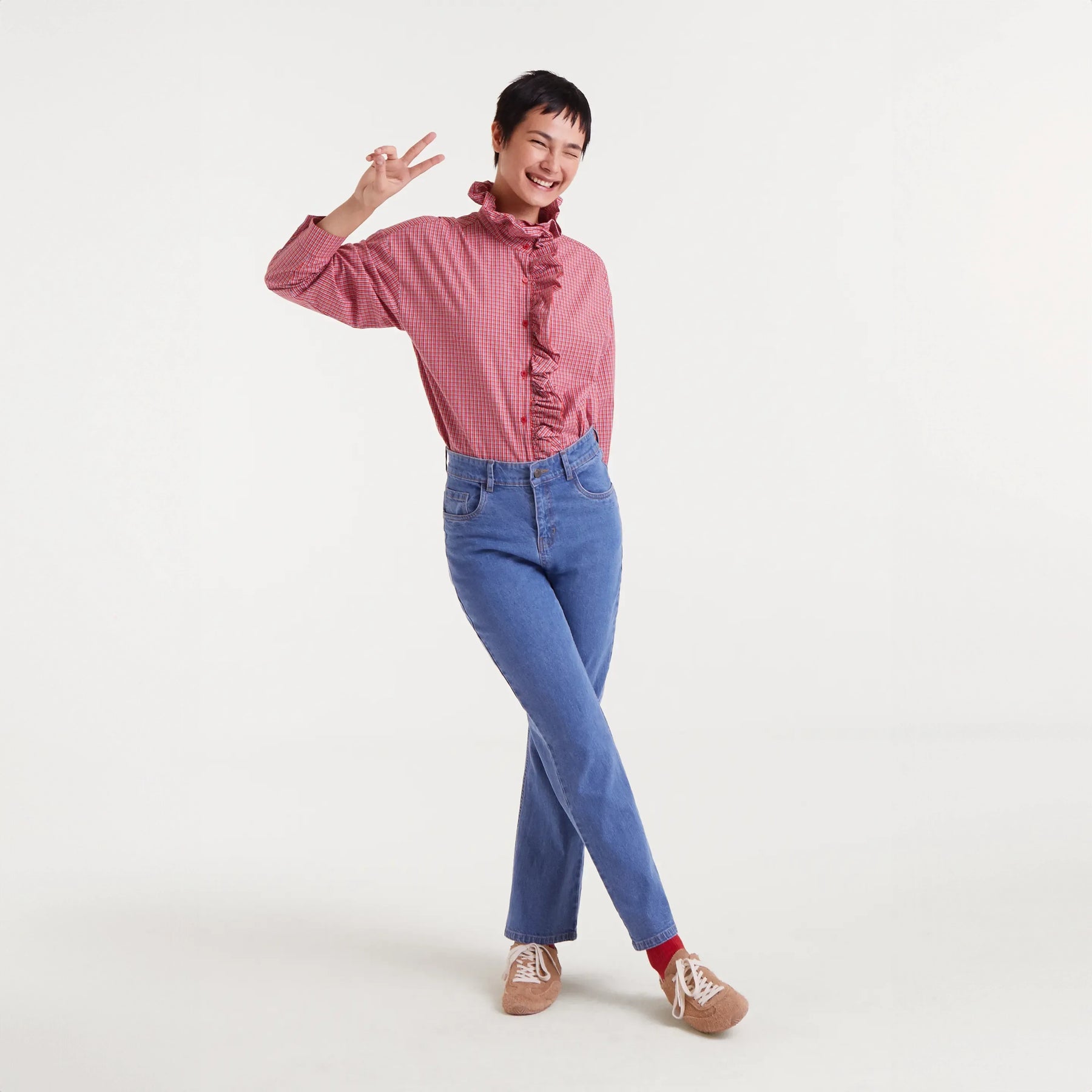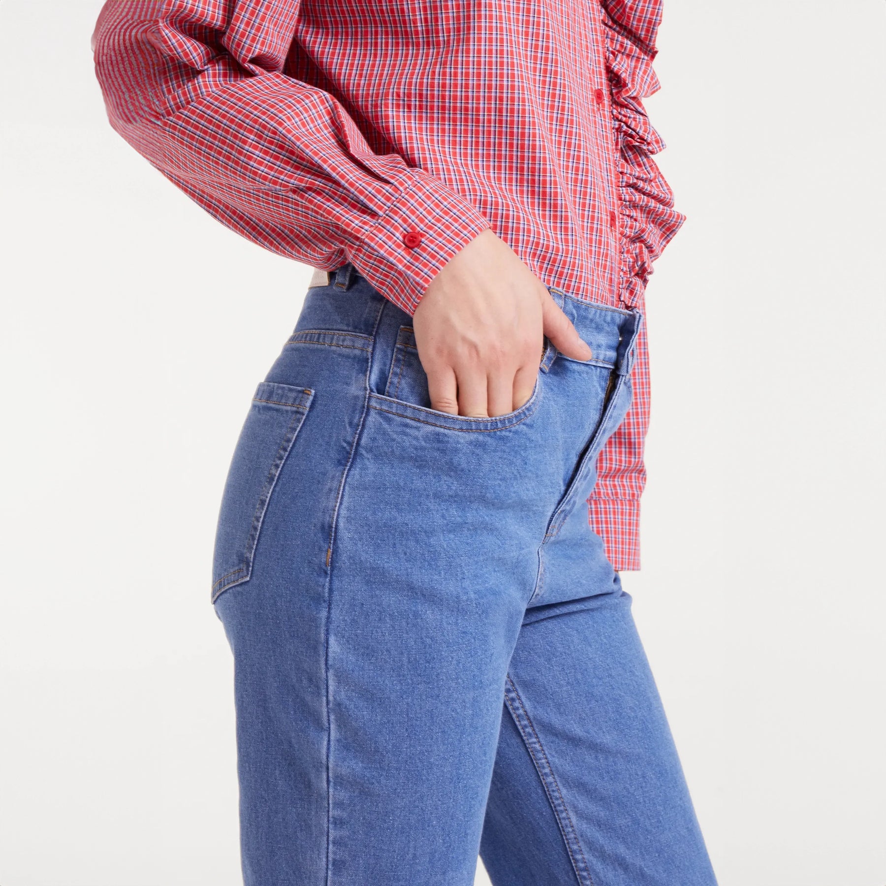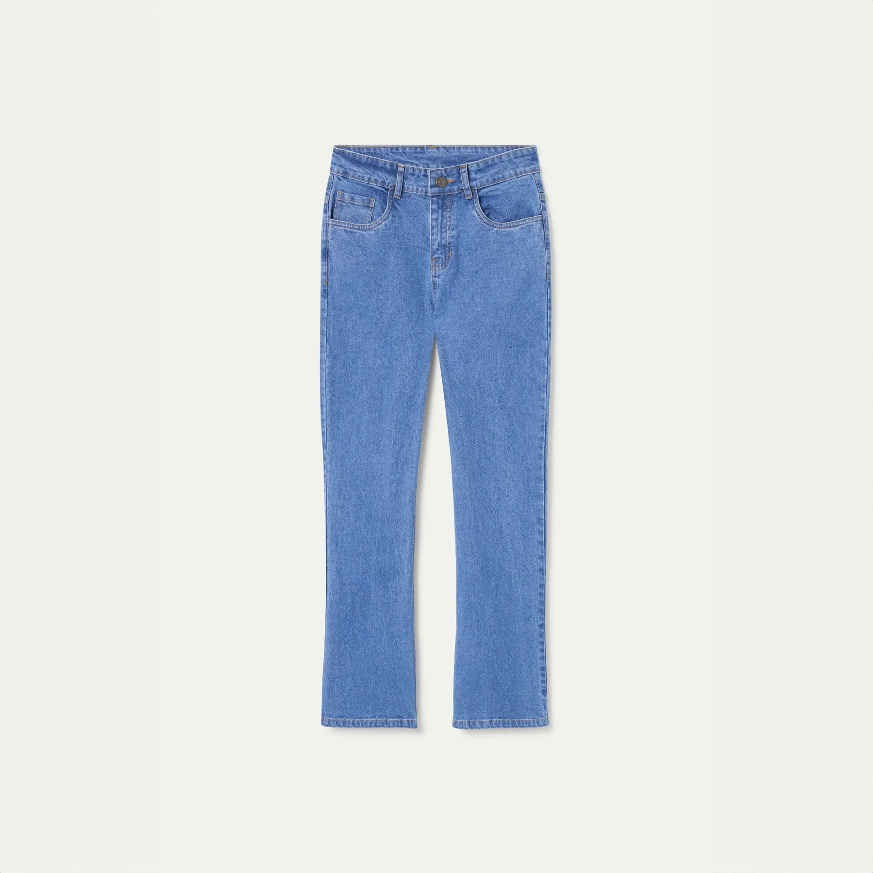 Vaquero azul claro con ese toque desenfadado que te encanta. Tejido denim elástico que se adapta a tus movimientos sin perder forma. Tiro alto y pernera recta para un look clásico que funciona con todo. Cierre frontal con cremallera y botón, bolsillos laterales y traseros para guardar tus cosas. Un básico versátil que no puede faltar en tu armario.