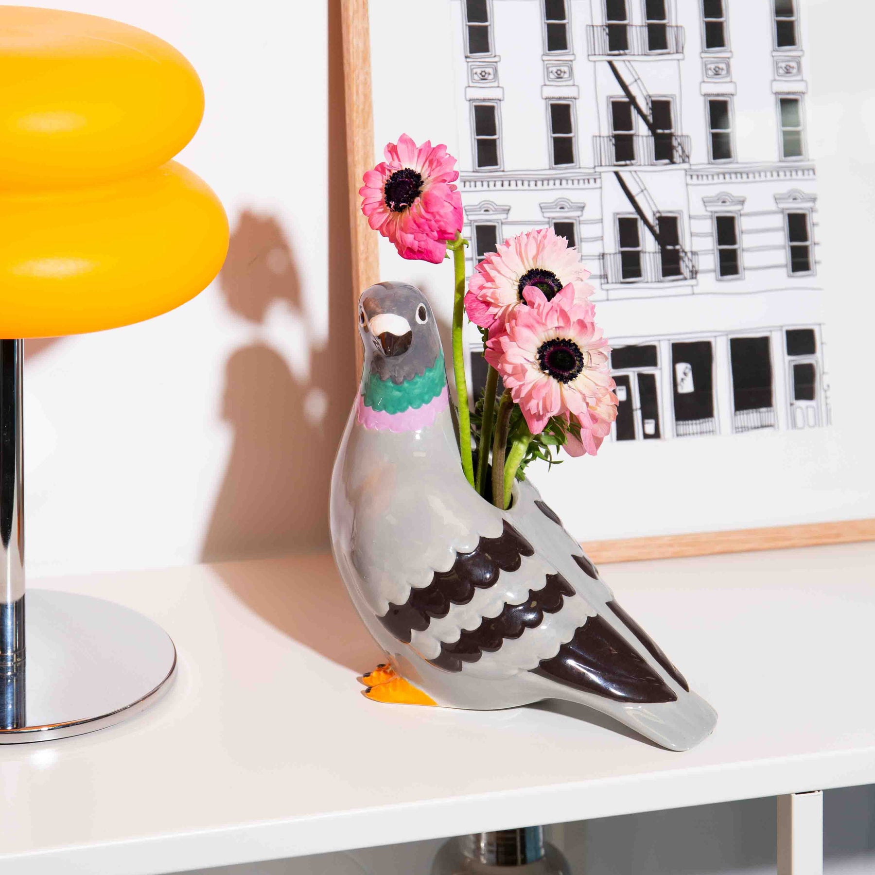 Un jarrón con personalidad que trae el encanto urbano a tu hogar. Inspirado en las palomas de la ciudad, este diseño juguetón y original añade un toque de humor y carácter a cualquier espacio. Una paloma perfecta para quienes buscan decoración diferente que genere conversación. Una pieza funcional que combina arte y utilidad, ideal para flores frescas o como objeto decorativo independiente.