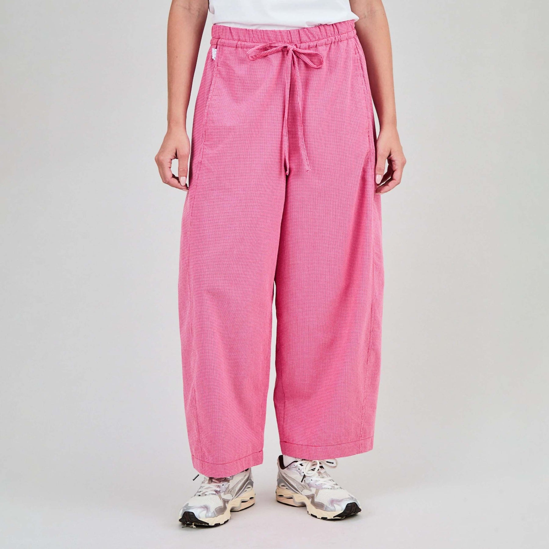 Pantalones Checks Balloon en rosa que transforman tu guardarropa de verano. Su corte balloon moderno abraza cómodamente mientras el tacto suave te acompaña desde la mañana hasta la noche. Perfectos para crear looks versátiles: combínalos con camisetas gráficas para un toque desenfadado, camisas aloha para escapadas de fin de semana, o blusas ligeras para días de oficina con estilo. Diseñados para quienes buscan prendas que funcionen en cualquier ocasión sin sacrificar comodidad ni personalidad.