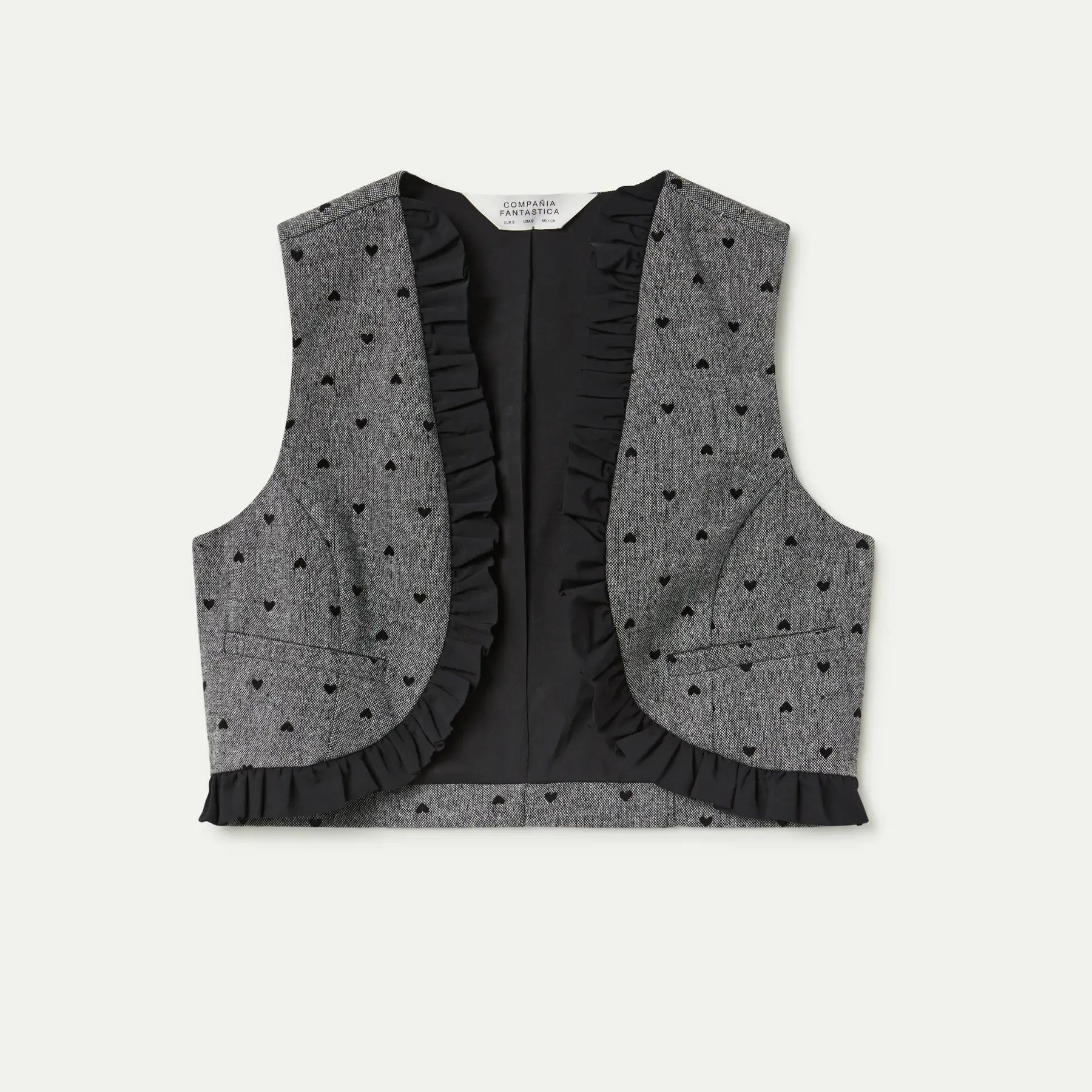 CHALECO - Compañía Fantástica, Tweed con estampado de corazones negro
