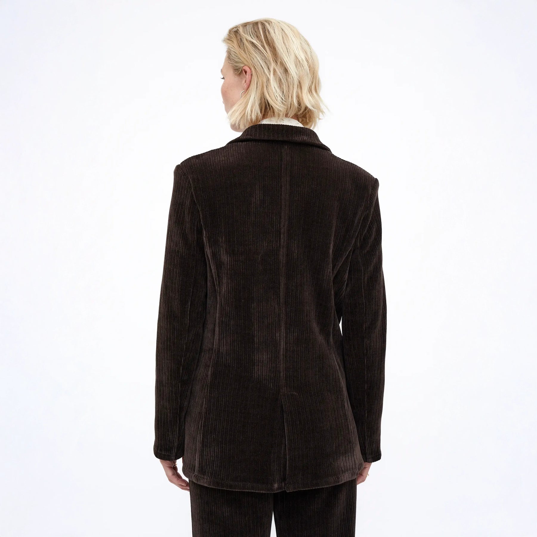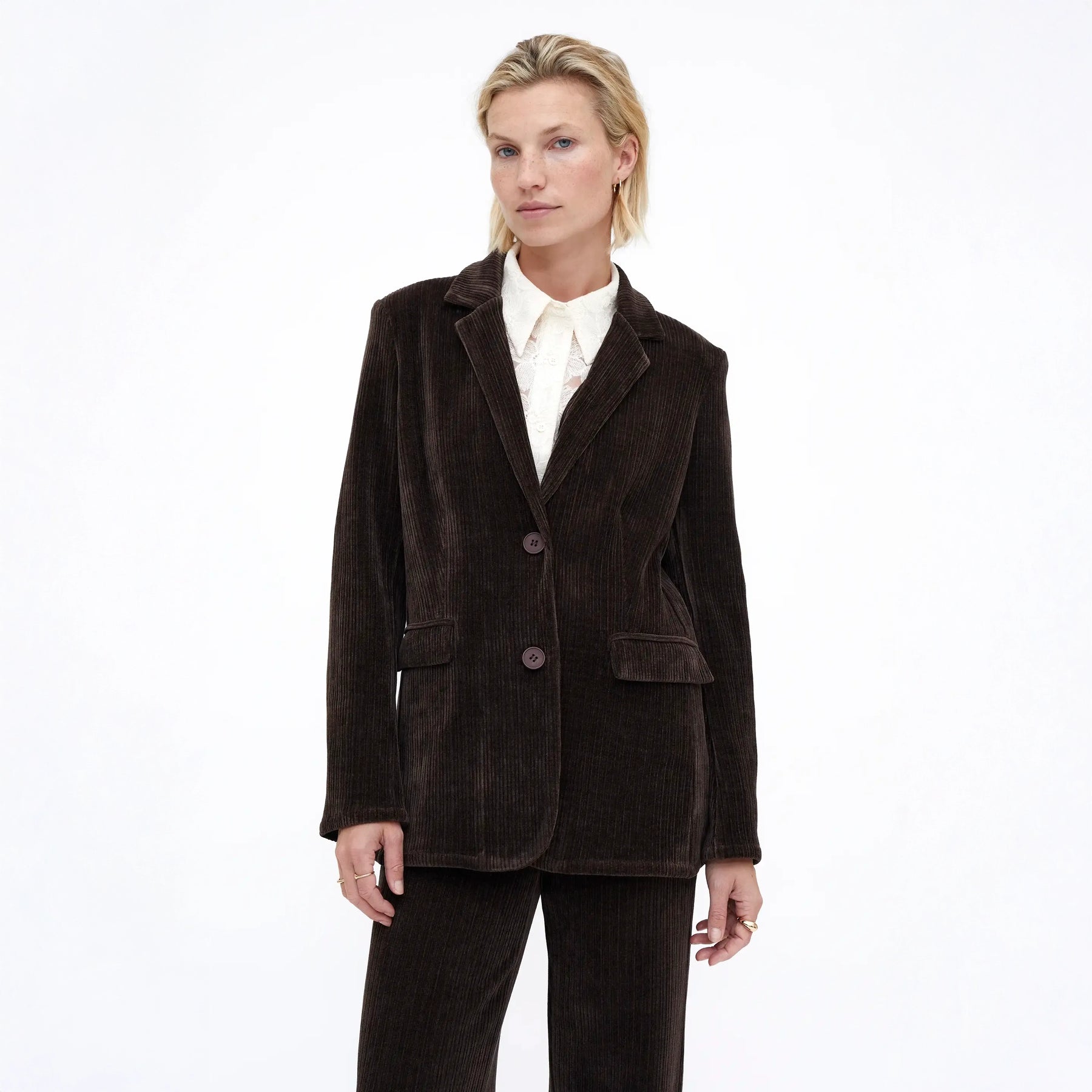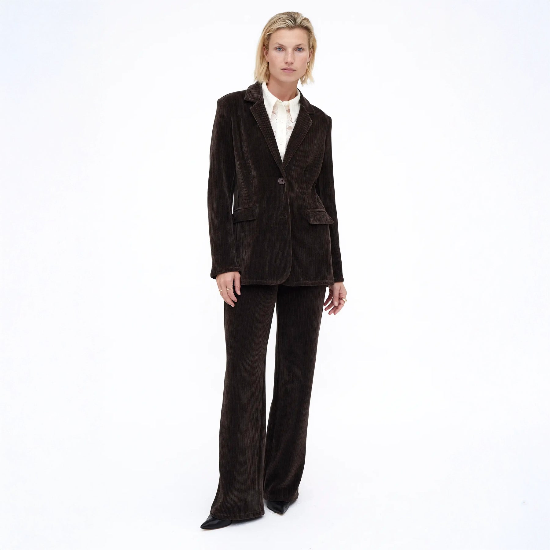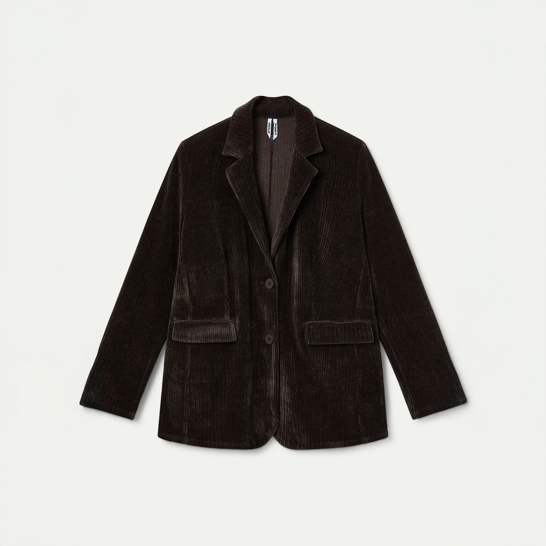 Este blazer de pana de terciopelo en un elegante tono marrón de Wild Pony combina estilo y sofisticación. Su cierre con dos botones aporta un toque clásico que realza cualquier look, mientras que los bolsillos frontales ofrecen funcionalidad sin perder diseño. Perfecto para destacar en ocasiones especiales o darle un aire renovado a tu vestuario diario.