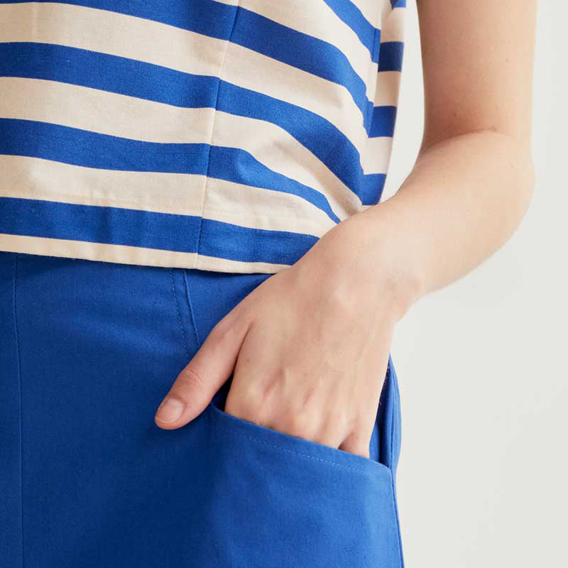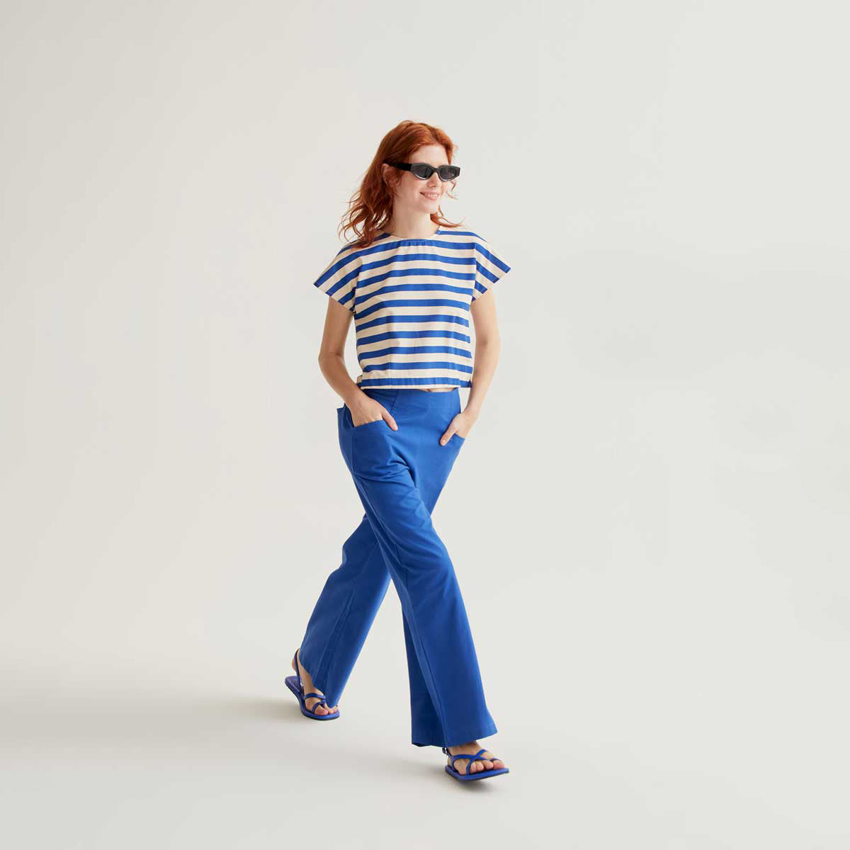Descubre nuestro pantalón azul de algodón puro, el aliado perfecto para tu día a día. Con un tejido 100% algodón suave y resistente, ofrece comodidad sin compromisos. Sus bolsillos laterales y traseros te permiten llevar todo lo que necesitas con estilo. Versátil y fácil de combinar, este pantalón se adapta a cualquier ocasión, desde un look casual hasta algo más elaborado. ¡Tu nuevo favorito te espera!