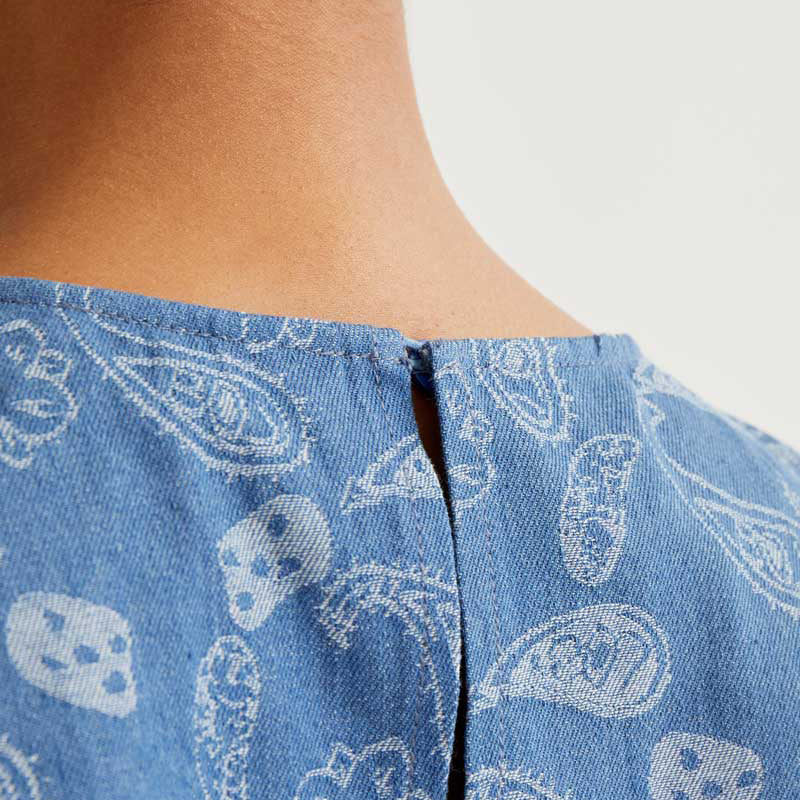 Curiosities: Lavar a máquina en agua fría, no usar blanqueador, no usar secadora, secar colgado a la sombra, planchado a la temperatura máxima de la placa interior de 110º, lavar con colores similares.